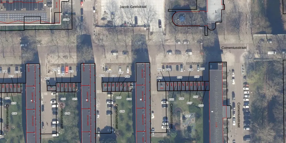 Het perceel waarop Comeniusstraat 157-1 staat heeft een oppervlakte van 1635 m². Dit is een zeer groot perceel. De perceeloppervlakte wordt geregistreerd door het Kadaster. Gedetailleerde informatie over de maten van dit perceel kunt u vinden in het rapport Kadastrale kaart met maatvoering van Comeniusstraat 157-1.