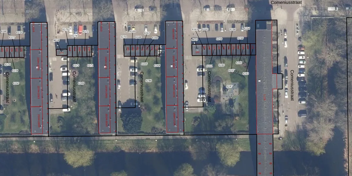 Het perceel waarop Comeniusstraat 165-2 staat heeft een oppervlakte van 1635 m². Dit is een zeer groot perceel. De perceeloppervlakte wordt geregistreerd door het Kadaster. Gedetailleerde informatie over de maten van dit perceel kunt u vinden in het rapport Kadastrale kaart met maatvoering van Comeniusstraat 165-2.