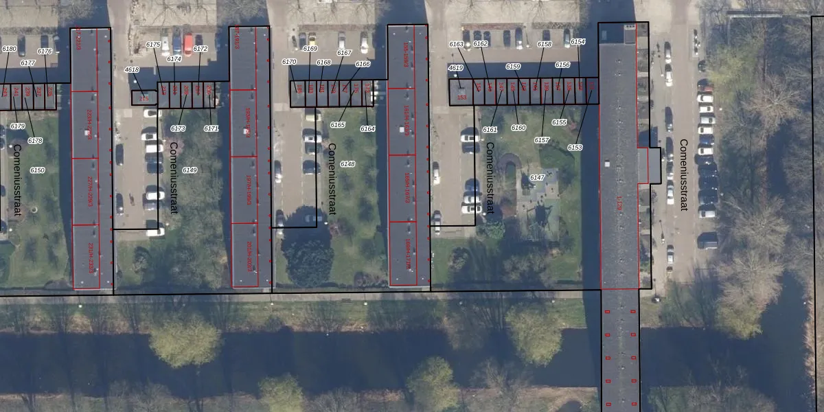 Het perceel waarop Comeniusstraat 167-H staat heeft een oppervlakte van 1635 m². Dit is een zeer groot perceel. De perceeloppervlakte wordt geregistreerd door het Kadaster. Gedetailleerde informatie over de maten van dit perceel kunt u vinden in het rapport Kadastrale kaart met maatvoering van Comeniusstraat 167-H.