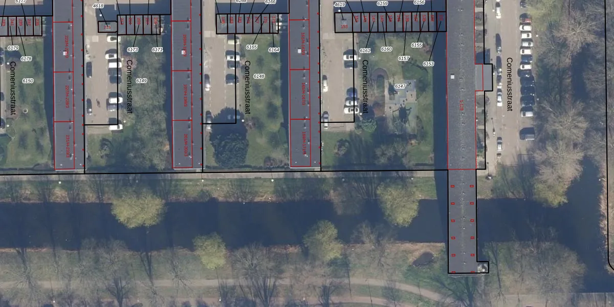 Het perceel waarop Comeniusstraat 171-2 staat heeft een oppervlakte van 1635 m². Dit is een zeer groot perceel. De perceeloppervlakte wordt geregistreerd door het Kadaster. Gedetailleerde informatie over de maten van dit perceel kunt u vinden in het rapport Kadastrale kaart met maatvoering van Comeniusstraat 171-2.