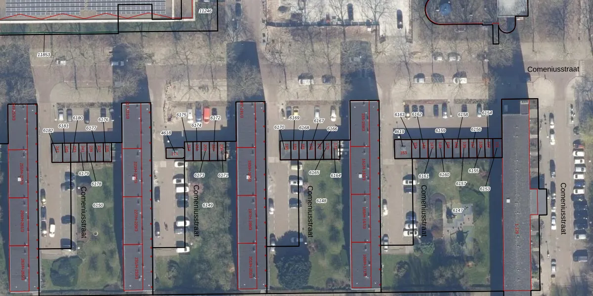 Het perceel waarop Comeniusstraat 183 staat heeft een oppervlakte van 18 m². Dit is een klein perceel. De perceeloppervlakte wordt geregistreerd door het Kadaster. Gedetailleerde informatie over de maten van dit perceel kunt u vinden in het rapport Kadastrale kaart met maatvoering van Comeniusstraat 183.