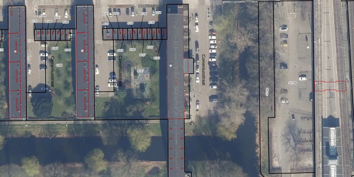 Het perceel waarop Comeniusstraat 21 staat heeft een oppervlakte van 2668 m². Dit is een zeer groot perceel. De perceeloppervlakte wordt geregistreerd door het Kadaster. Gedetailleerde informatie over de maten van dit perceel kunt u vinden in het rapport Kadastrale kaart met maatvoering van Comeniusstraat 21.