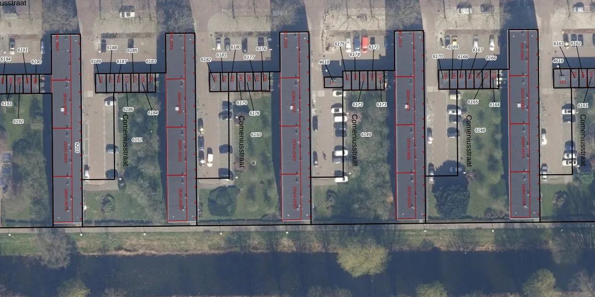 Het perceel waarop Comeniusstraat 227-H staat heeft een oppervlakte van 1633 m². Dit is een zeer groot perceel. De perceeloppervlakte wordt geregistreerd door het Kadaster. Gedetailleerde informatie over de maten van dit perceel kunt u vinden in het rapport Kadastrale kaart met maatvoering van Comeniusstraat 227-H.