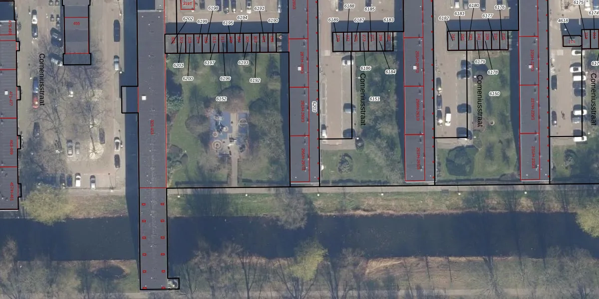 Comeniusstraat 295-H is gelegen op kadastraal perceel STN02D6203. Deze kadastrale aanduiding is uniek en wordt gebruikt door het Kadaster om eigendomsrechten en andere zakelijke rechten vast te leggen. Het perceel maakt onderdeel uit van de kadastrale gemeente Sloten Noord-Holland.