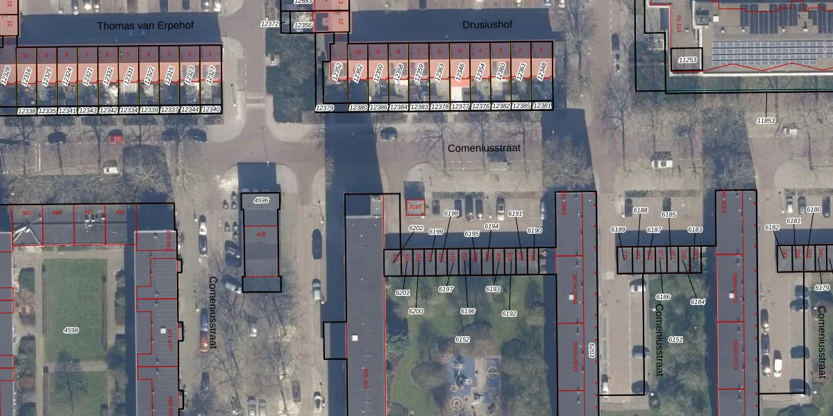 Comeniusstraat 319-T is gelegen op kadastraal perceel STN02D12665. Deze kadastrale aanduiding is uniek en wordt gebruikt door het Kadaster om eigendomsrechten en andere zakelijke rechten vast te leggen. Het perceel maakt onderdeel uit van de kadastrale gemeente Sloten Noord-Holland.