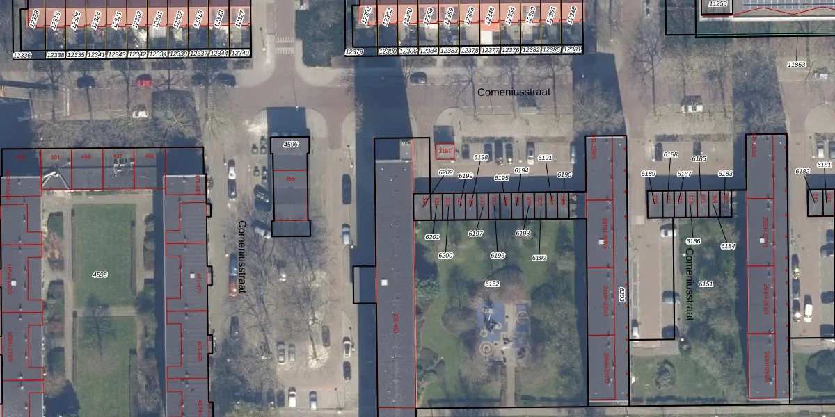 Gebruik de zoekbalk of klik op een perceel voor informatie over de adressen binnen dit perceel.