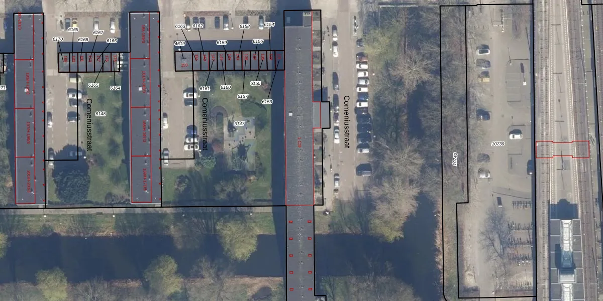 Het perceel waarop Comeniusstraat 35 staat heeft een oppervlakte van 2668 m². Dit is een zeer groot perceel. De perceeloppervlakte wordt geregistreerd door het Kadaster. Gedetailleerde informatie over de maten van dit perceel kunt u vinden in het rapport Kadastrale kaart met maatvoering van Comeniusstraat 35.