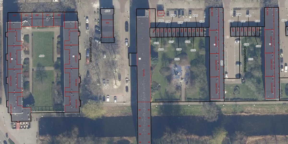 Het perceel waarop Comeniusstraat 409 staat heeft een oppervlakte van 2887 m². Dit is een zeer groot perceel. De perceeloppervlakte wordt geregistreerd door het Kadaster. Gedetailleerde informatie over de maten van dit perceel kunt u vinden in het rapport Kadastrale kaart met maatvoering van Comeniusstraat 409.