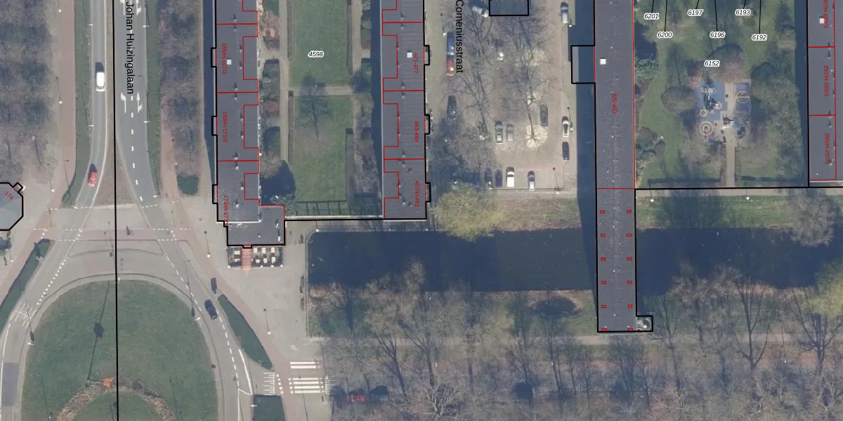 Het perceel waarop Comeniusstraat 457-1 staat heeft een oppervlakte van 3557 m². Dit is een zeer groot perceel. De perceeloppervlakte wordt geregistreerd door het Kadaster. Gedetailleerde informatie over de maten van dit perceel kunt u vinden in het rapport Kadastrale kaart met maatvoering van Comeniusstraat 457-1.