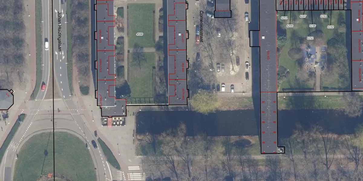 Het perceel waarop Comeniusstraat 459-2 staat heeft een oppervlakte van 3557 m². Dit is een zeer groot perceel. De perceeloppervlakte wordt geregistreerd door het Kadaster. Gedetailleerde informatie over de maten van dit perceel kunt u vinden in het rapport Kadastrale kaart met maatvoering van Comeniusstraat 459-2.