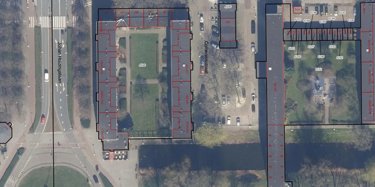 Het perceel waarop Comeniusstraat 467-H staat heeft een oppervlakte van 3557 m². Dit is een zeer groot perceel. De perceeloppervlakte wordt geregistreerd door het Kadaster. Gedetailleerde informatie over de maten van dit perceel kunt u vinden in het rapport Kadastrale kaart met maatvoering van Comeniusstraat 467-H.