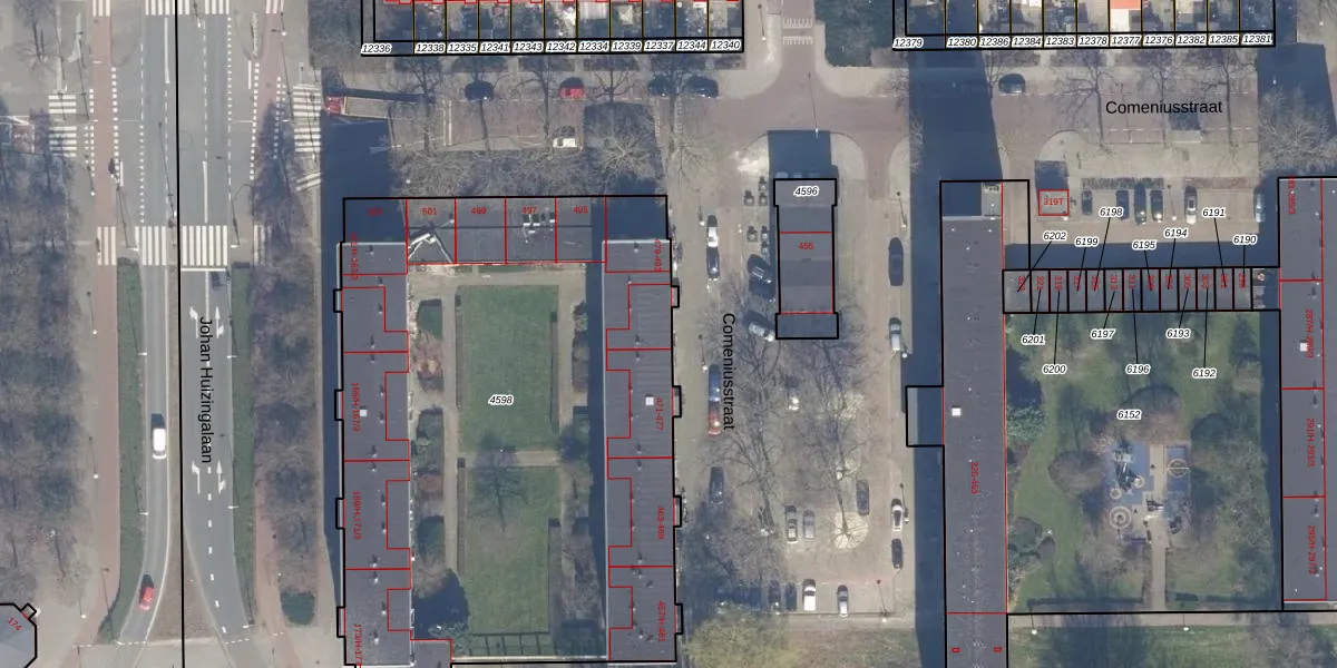 Het perceel waarop Comeniusstraat 479 staat heeft een oppervlakte van 3557 m². Dit is een zeer groot perceel. De perceeloppervlakte wordt geregistreerd door het Kadaster. Gedetailleerde informatie over de maten van dit perceel kunt u vinden in het rapport Kadastrale kaart met maatvoering van Comeniusstraat 479.