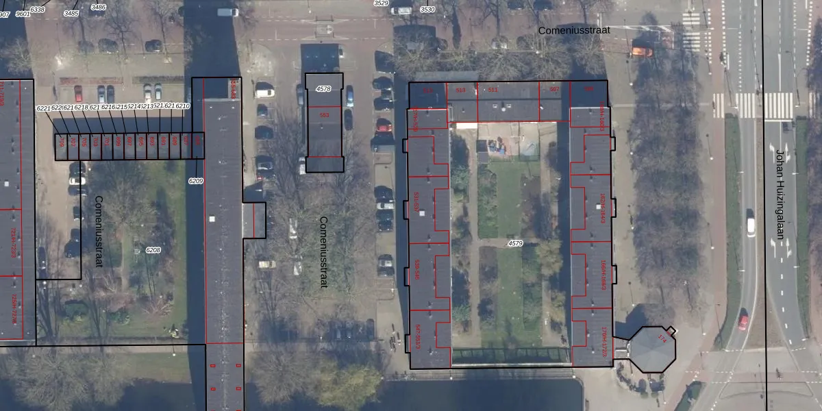 Het perceel waarop Comeniusstraat 533-2 staat heeft een oppervlakte van 3598 m². Dit is een zeer groot perceel. De perceeloppervlakte wordt geregistreerd door het Kadaster. Gedetailleerde informatie over de maten van dit perceel kunt u vinden in het rapport Kadastrale kaart met maatvoering van Comeniusstraat 533-2.