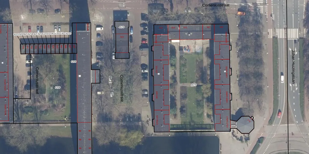 Het perceel waarop Comeniusstraat 535-H staat heeft een oppervlakte van 3598 m². Dit is een zeer groot perceel. De perceeloppervlakte wordt geregistreerd door het Kadaster. Gedetailleerde informatie over de maten van dit perceel kunt u vinden in het rapport Kadastrale kaart met maatvoering van Comeniusstraat 535-H.