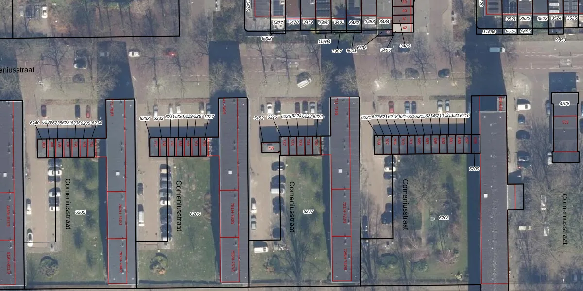 Het perceel waarop Comeniusstraat 735 staat heeft een oppervlakte van 18 m². Dit is een klein perceel. De perceeloppervlakte wordt geregistreerd door het Kadaster. Gedetailleerde informatie over de maten van dit perceel kunt u vinden in het rapport Kadastrale kaart met maatvoering van Comeniusstraat 735.