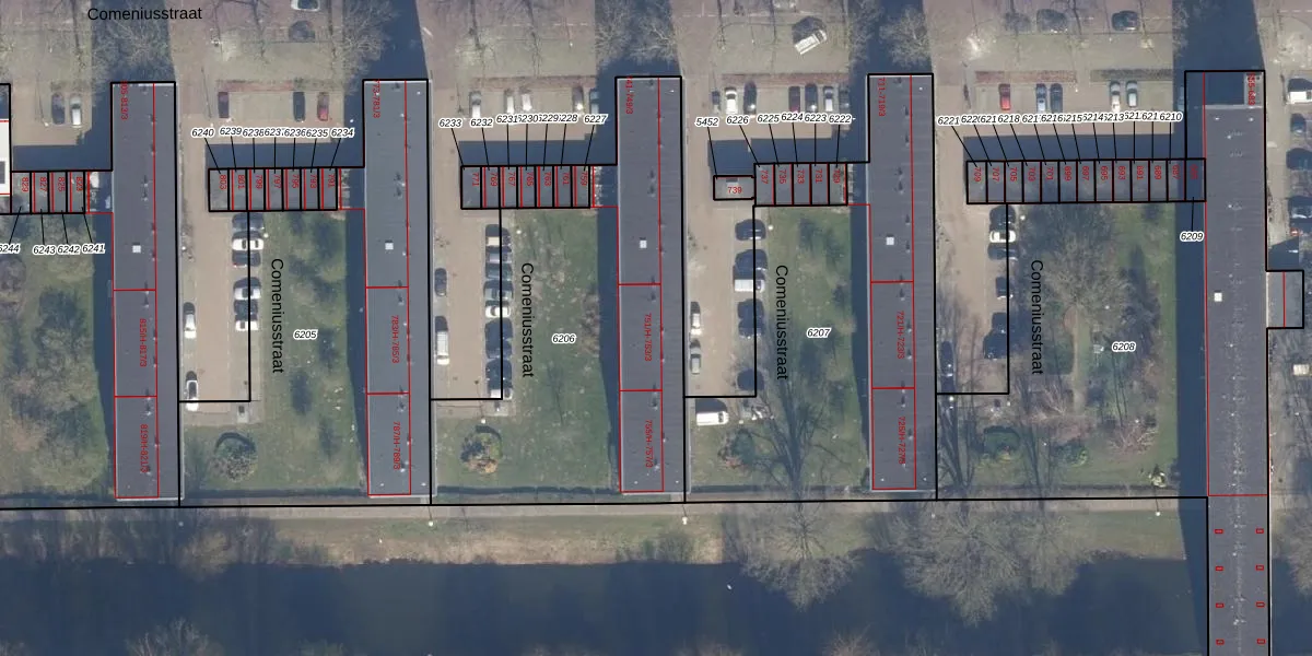 Het perceel waarop Comeniusstraat 751-H staat heeft een oppervlakte van 1636 m². Dit is een zeer groot perceel. De perceeloppervlakte wordt geregistreerd door het Kadaster. Gedetailleerde informatie over de maten van dit perceel kunt u vinden in het rapport Kadastrale kaart met maatvoering van Comeniusstraat 751-H.
