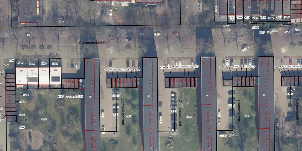 Het perceel waarop Comeniusstraat 777-3 staat heeft een oppervlakte van 1637 m². Dit is een zeer groot perceel. De perceeloppervlakte wordt geregistreerd door het Kadaster. Gedetailleerde informatie over de maten van dit perceel kunt u vinden in het rapport Kadastrale kaart met maatvoering van Comeniusstraat 777-3.