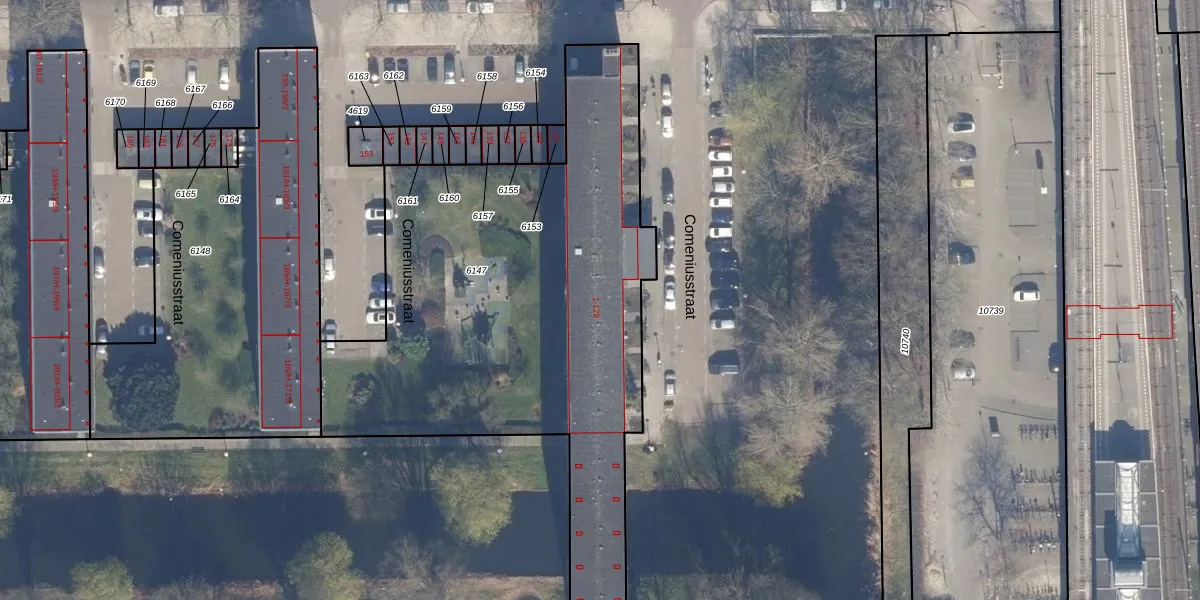 Het perceel waarop Comeniusstraat 85 staat heeft een oppervlakte van 2668 m². Dit is een zeer groot perceel. De perceeloppervlakte wordt geregistreerd door het Kadaster. Gedetailleerde informatie over de maten van dit perceel kunt u vinden in het rapport Kadastrale kaart met maatvoering van Comeniusstraat 85.