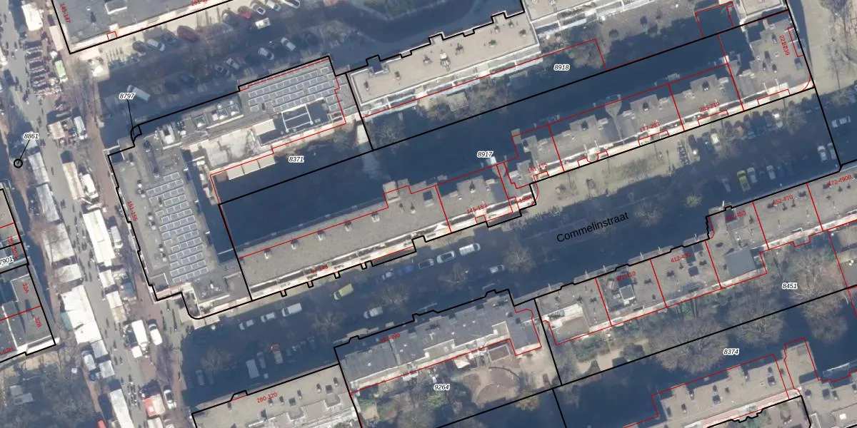 Commelinstraat 141 is gelegen op kadastraal perceel ASD15S8917. Deze kadastrale aanduiding is uniek en wordt gebruikt door het Kadaster om eigendomsrechten en andere zakelijke rechten vast te leggen. Het perceel maakt onderdeel uit van de kadastrale gemeente Amsterdam.