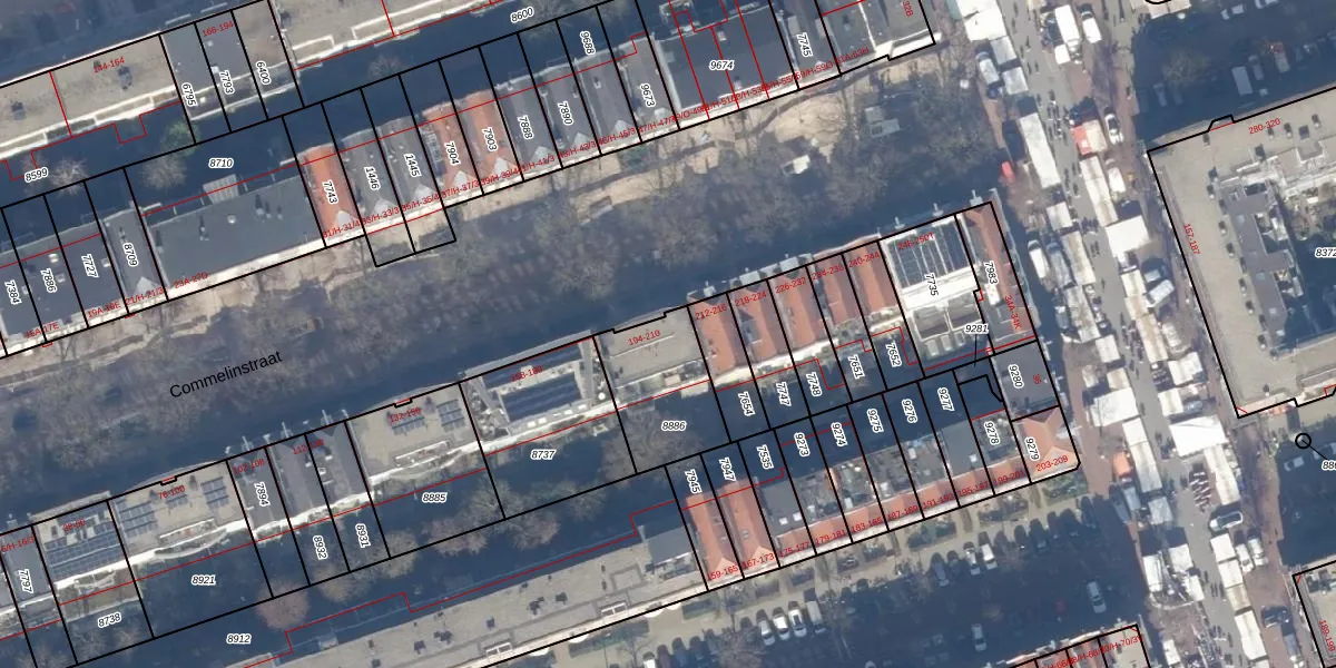 Commelinstraat 210 is gelegen op kadastraal perceel ASD15S8886. Deze kadastrale aanduiding is uniek en wordt gebruikt door het Kadaster om eigendomsrechten en andere zakelijke rechten vast te leggen. Het perceel maakt onderdeel uit van de kadastrale gemeente Amsterdam.
