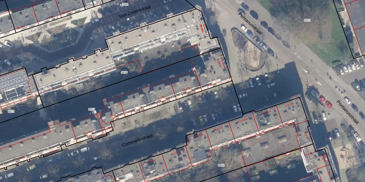 Commelinstraat 213 is gelegen op kadastraal perceel ASD15S8917. Deze kadastrale aanduiding is uniek en wordt gebruikt door het Kadaster om eigendomsrechten en andere zakelijke rechten vast te leggen. Het perceel maakt onderdeel uit van de kadastrale gemeente Amsterdam.