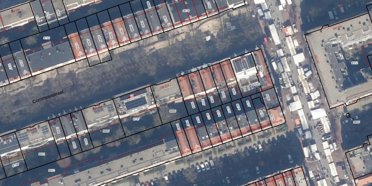 Commelinstraat 216 is gelegen op kadastraal perceel ASD15S7654. Deze kadastrale aanduiding is uniek en wordt gebruikt door het Kadaster om eigendomsrechten en andere zakelijke rechten vast te leggen. Het perceel maakt onderdeel uit van de kadastrale gemeente Amsterdam.