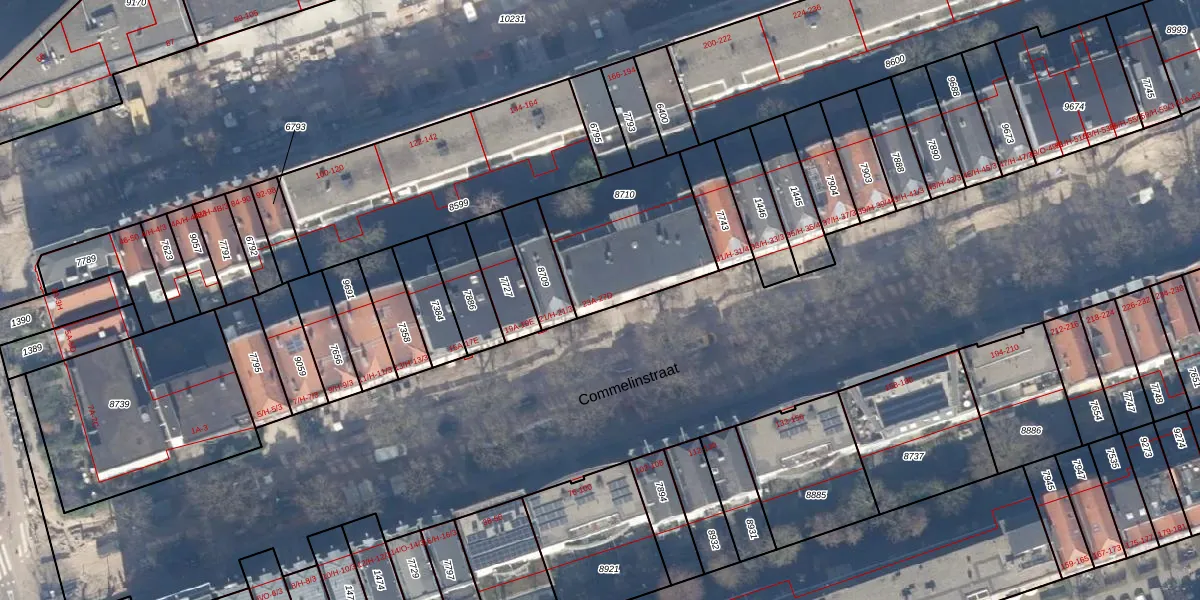 Commelinstraat 23-A is gelegen op kadastraal perceel ASD15S8710. Deze kadastrale aanduiding is uniek en wordt gebruikt door het Kadaster om eigendomsrechten en andere zakelijke rechten vast te leggen. Het perceel maakt onderdeel uit van de kadastrale gemeente Amsterdam.