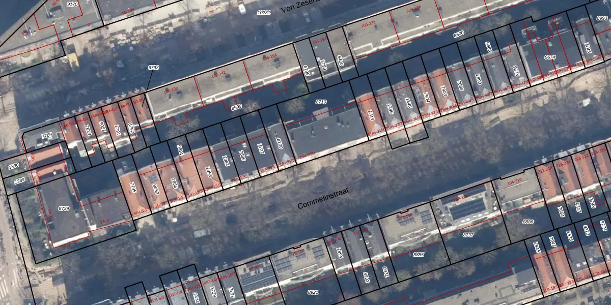 Commelinstraat 23-C is gelegen op kadastraal perceel ASD15S8710. Deze kadastrale aanduiding is uniek en wordt gebruikt door het Kadaster om eigendomsrechten en andere zakelijke rechten vast te leggen. Het perceel maakt onderdeel uit van de kadastrale gemeente Amsterdam.