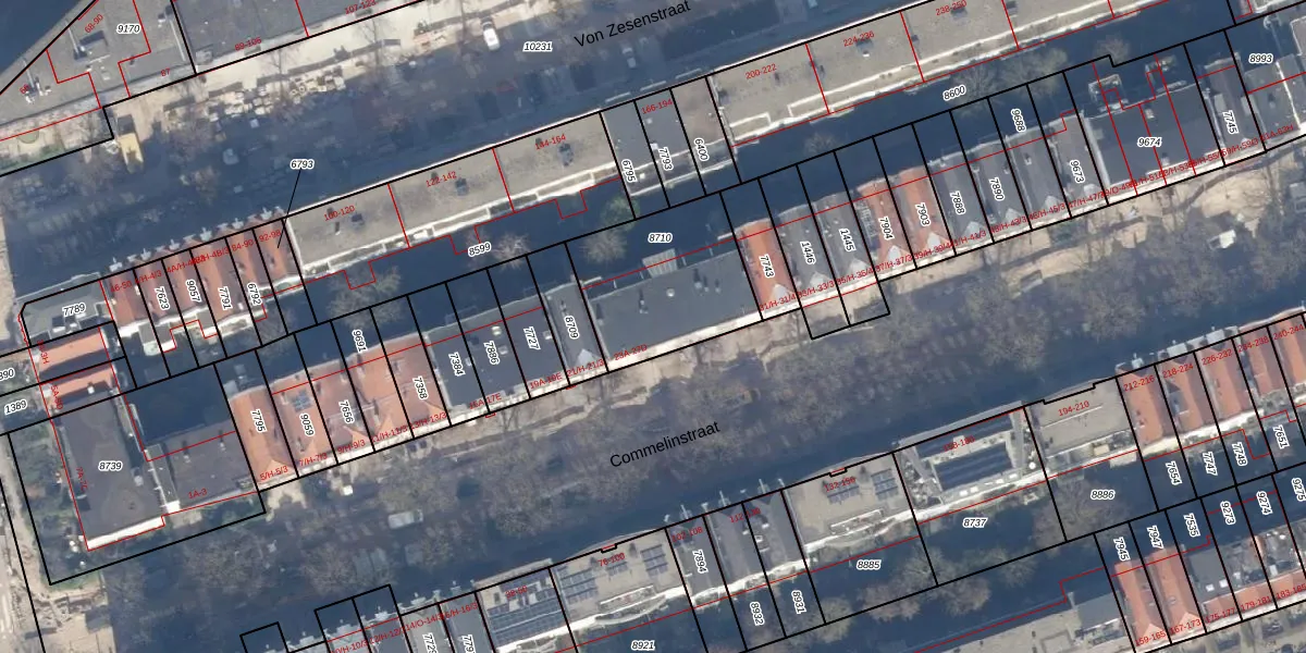 Commelinstraat 25-B is gelegen op kadastraal perceel ASD15S8710. Deze kadastrale aanduiding is uniek en wordt gebruikt door het Kadaster om eigendomsrechten en andere zakelijke rechten vast te leggen. Het perceel maakt onderdeel uit van de kadastrale gemeente Amsterdam.