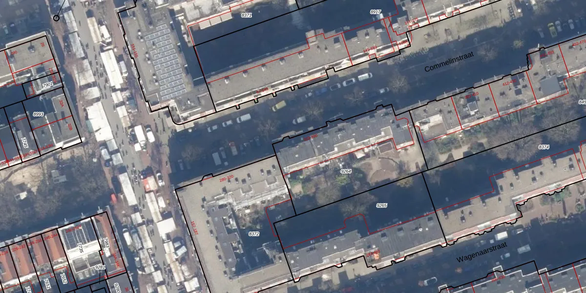 Het perceel waarop het adres ligt is ASD15-S-9264. De afkorting 'ASD15' staat voor kadastrale gemeente Amsterdam. De gemiddelde perceeloppervlakte in de kadastrale gemeente Amsterdam is 537,06 m². Dit perceel is met zijn 1195 m² dus groter dan gemiddeld. Het grootste perceel in de kadastrale gemeente is 14,5 ha. Het kleinste perceel heeft een oppervlakte van 0 m². Er zijn 25 adressen aanwezig op het perceel. In de Basisregistratie Kadaster (BRK) werden de grenzen van het perceel geregistreerd op 09-11-2006.