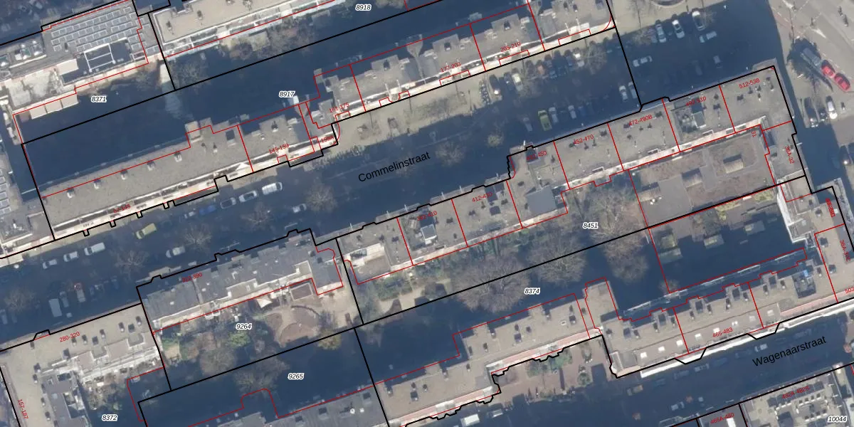 Commelinstraat 406 is gelegen op kadastraal perceel ASD15S8451. Deze kadastrale aanduiding is uniek en wordt gebruikt door het Kadaster om eigendomsrechten en andere zakelijke rechten vast te leggen. Het perceel maakt onderdeel uit van de kadastrale gemeente Amsterdam.