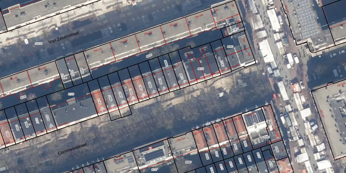 Het perceel waarop het adres ligt is ASD15-S-9688. De afkorting 'ASD15' staat voor kadastrale gemeente Amsterdam. Het perceel is kleiner dan gemiddeld in Amsterdam. Het perceel is 131 m² groot, terwijl het gemiddelde ligt op 537,06 m². Het kleinste perceel in de kadastrale gemeente is 0 m² groot. De grootste perceeloppervlakte is 14,5 ha. Op het perceel liggen in totaal 4 adressen. De huidige grenzen van het perceel zijn digitaal in de Basisregistratie Kadaster (BRK) geregistreerd op 01-04-2008.