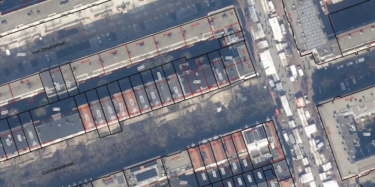Het perceel waarop het adres ligt is ASD15-S-9674. De afkorting 'ASD15' staat voor kadastrale gemeente Amsterdam. Het perceel is kleiner dan gemiddeld in Amsterdam. Het perceel is 367 m² groot, terwijl het gemiddelde ligt op 537,06 m². Het kleinste perceel in de kadastrale gemeente is 0 m² groot. De grootste perceeloppervlakte is 14,5 ha. Op het perceel zijn 16 adressen aanwezig. In de Basisregistratie Kadaster (BRK) werden de grenzen van het perceel geregistreerd op 20-12-2007.
