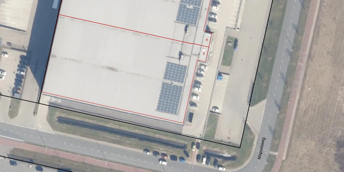 Het perceel waarop Conakryweg 2-A staat heeft een oppervlakte van 2,4 ha. Dit is een zeer groot perceel. De perceeloppervlakte wordt geregistreerd door het Kadaster. Gedetailleerde informatie over de maten van dit perceel kunt u vinden in het rapport Kadastrale kaart met maatvoering van Conakryweg 2-A.