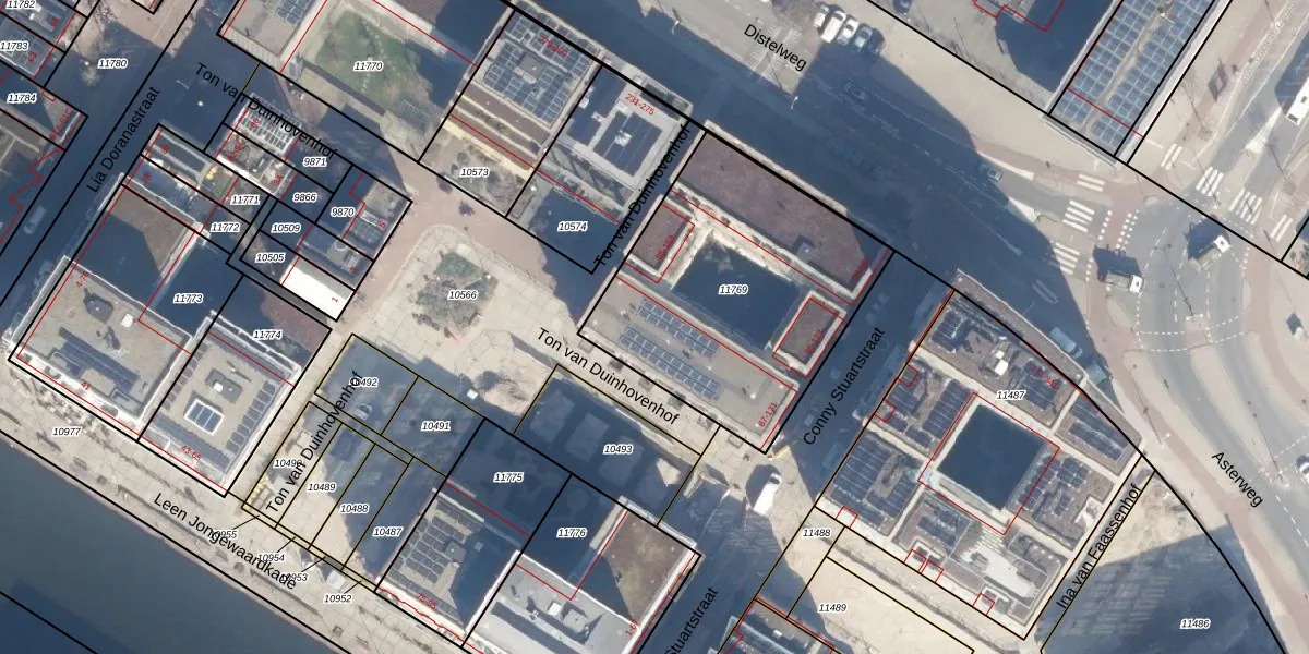 Het adres ligt op het perceel ASD07-K-11769, dat zich in de kadastrale gemeente Amsterdam bevindt. Het perceel is 1250 m² groot. Dat is kleiner dan de gemiddelde perceeloppervlakte in Amsterdam, dat op 3005,21 m² ligt. Het grootste perceel in de kadastrale gemeente is 56,2 ha. Het kleinste perceel heeft een oppervlakte van 0 m². Op het perceel zijn 50 adressen aanwezig. De huidige grenzen van het perceel zijn digitaal in de Basisregistratie Kadaster (BRK) geregistreerd op 14-09-2023.
