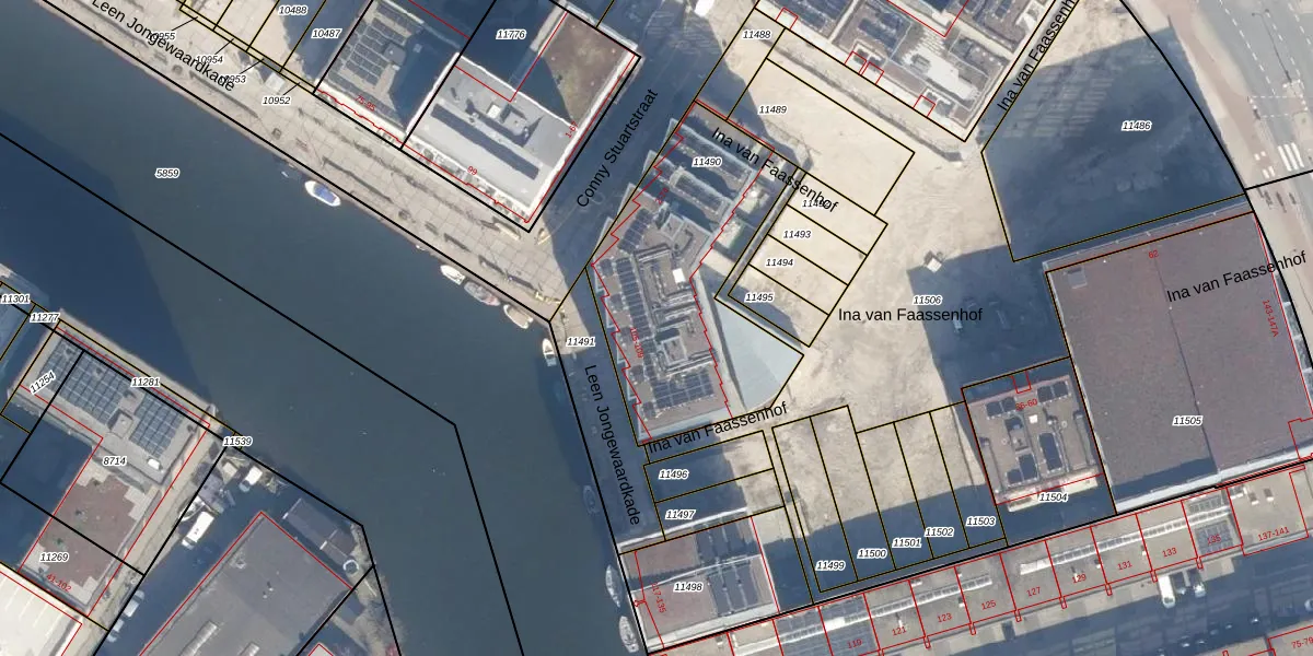 Het perceel waarop het adres ligt is ASD07-K-11490. De afkorting 'ASD07' staat voor kadastrale gemeente Amsterdam. Het perceel is 1036 m² groot. Dat is kleiner dan de gemiddelde perceeloppervlakte in Amsterdam, dat op 3009,24 m² ligt. Het grootste perceel in de kadastrale gemeente is 56,2 ha. Het kleinste perceel heeft een oppervlakte van 0 m². Op het perceel liggen in totaal 40 adressen. In de Basisregistratie Kadaster (BRK) werden de grenzen van het perceel geregistreerd op 15-04-2021.
