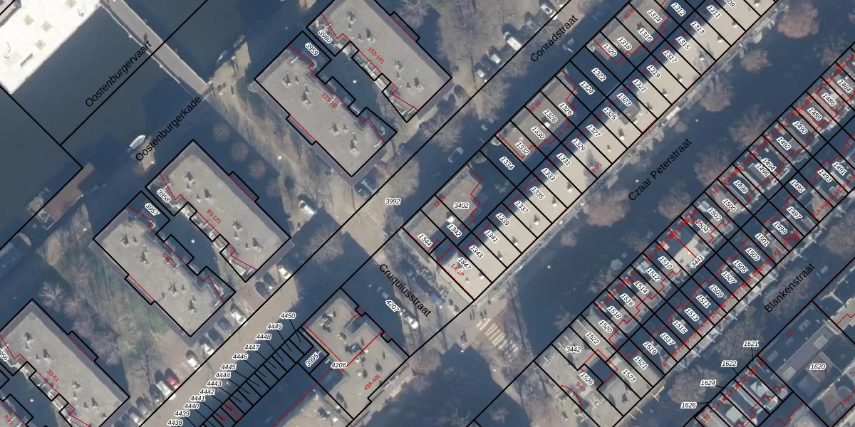 Het perceel waarop Conradstraat 12 staat heeft een oppervlakte van 59 m². Dit is een klein perceel. De perceeloppervlakte wordt geregistreerd door het Kadaster. Gedetailleerde informatie over de maten van dit perceel kunt u vinden in het rapport Kadastrale kaart met maatvoering van Conradstraat 12.
