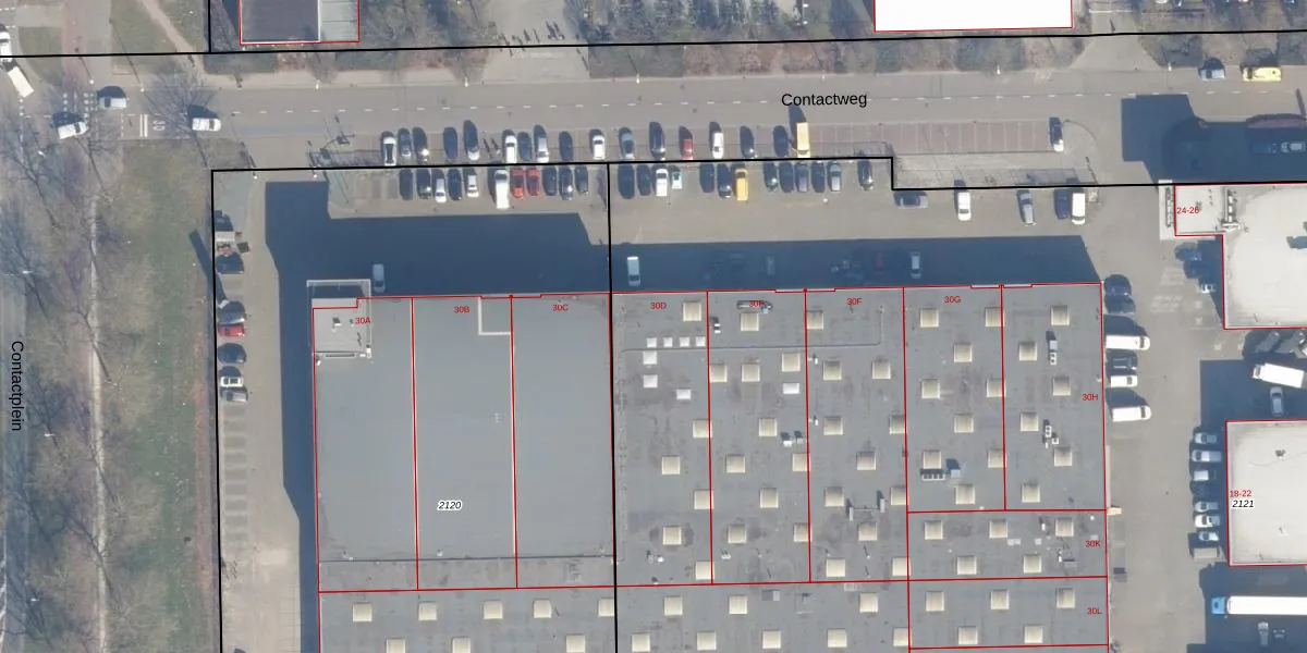 Het perceel waarop Contactweg 30-D staat heeft een oppervlakte van 1,3 ha. Dit is een zeer groot perceel. De perceeloppervlakte wordt geregistreerd door het Kadaster. Gedetailleerde informatie over de maten van dit perceel kunt u vinden in het rapport Kadastrale kaart met maatvoering van Contactweg 30-D.