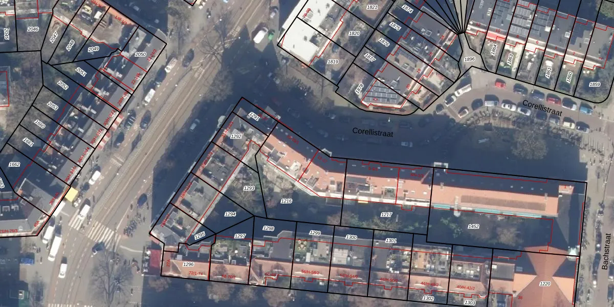 Corellistraat 19 is gelegen op kadastraal perceel ASD22Z1216. Deze kadastrale aanduiding is uniek en wordt gebruikt door het Kadaster om eigendomsrechten en andere zakelijke rechten vast te leggen. Het perceel maakt onderdeel uit van de kadastrale gemeente Amsterdam.