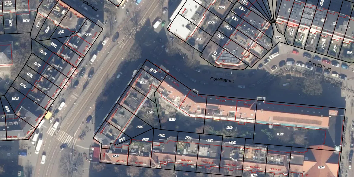 Corellistraat 21 is gelegen op kadastraal perceel ASD22Z1216. Deze kadastrale aanduiding is uniek en wordt gebruikt door het Kadaster om eigendomsrechten en andere zakelijke rechten vast te leggen. Het perceel maakt onderdeel uit van de kadastrale gemeente Amsterdam.