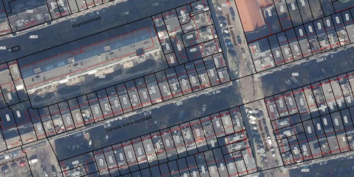 Het perceel waarop Cornelis Anthoniszstraat 27-H staat heeft een oppervlakte van 97 m². Dit is een klein perceel. De perceeloppervlakte wordt geregistreerd door het Kadaster. Gedetailleerde informatie over de maten van dit perceel kunt u vinden in het rapport Kadastrale kaart met maatvoering van Cornelis Anthoniszstraat 27-H.