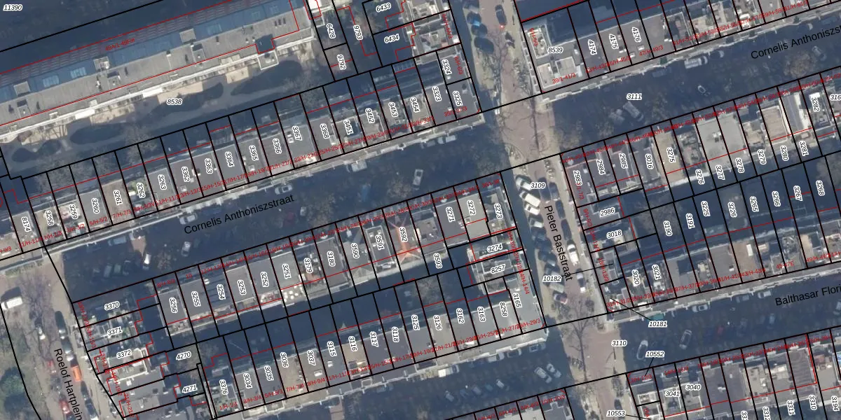 Het perceel waarop het adres ligt is ASD17-U-3593. De afkorting 'ASD17' staat voor kadastrale gemeente Amsterdam. De gemiddelde perceelgrootte in Amsterdam is 394,52 m². Dit perceel is kleiner: de perceeloppervlakte bedraagt 112 m². Het kleinste perceel in de kadastrale gemeente is 0 m² groot. De grootste perceeloppervlakte is 22,9 ha. Op het perceel liggen in totaal 3 adressen. De laatste wijziging in het de Basisregistratie Kadaster (BRK) was op 25-01-2007.
