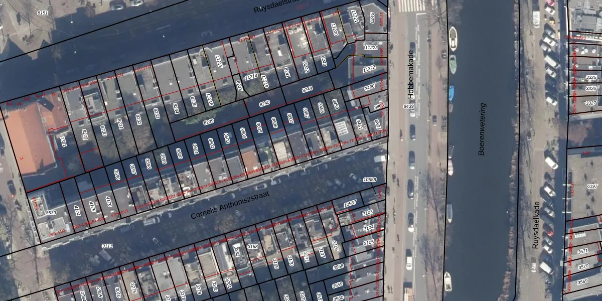 Het adres is gelegen op perceel 3607 in de sectie U en de kadastrale gemeente Amsterdam. De kadastrale aanduiding is aldus ASD17-U-3607. De gemiddelde perceelgrootte in Amsterdam is 394,52 m². Dit perceel is kleiner: de perceeloppervlakte bedraagt 107 m². Het grootste perceel in de kadastrale gemeente is 22,9 ha. Het kleinste perceel heeft een oppervlakte van 0 m². Op het perceel liggen in totaal 6 adressen. De huidige grenzen van het perceel zijn digitaal in de Basisregistratie Kadaster (BRK) geregistreerd op 25-01-2007.