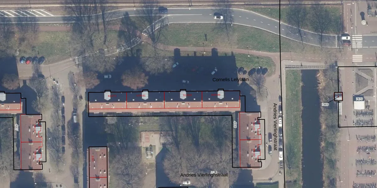 Het perceel waarop Cornelis Lelylaan 53-1 staat heeft een oppervlakte van 1557 m². Dit is een zeer groot perceel. De perceeloppervlakte wordt geregistreerd door het Kadaster. Gedetailleerde informatie over de maten van dit perceel kunt u vinden in het rapport Kadastrale kaart met maatvoering van Cornelis Lelylaan 53-1.
