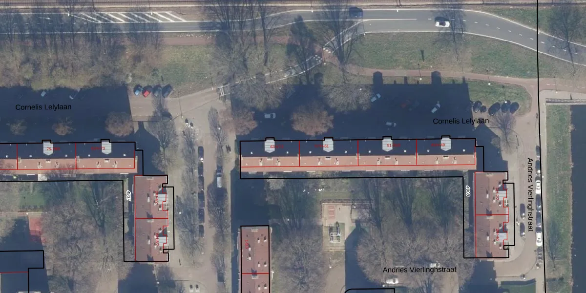 Het perceel waarop Cornelis Lelylaan 63 staat heeft een oppervlakte van 1557 m². Dit is een zeer groot perceel. De perceeloppervlakte wordt geregistreerd door het Kadaster. Gedetailleerde informatie over de maten van dit perceel kunt u vinden in het rapport Kadastrale kaart met maatvoering van Cornelis Lelylaan 63.
