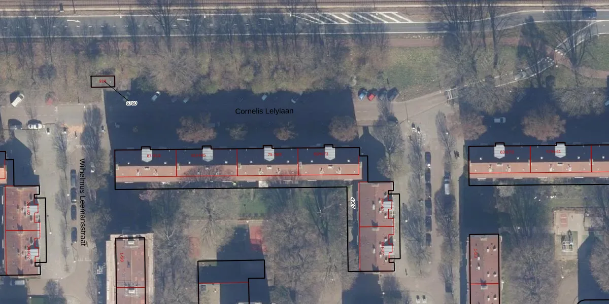 Het perceel waarop Cornelis Lelylaan 73 staat heeft een oppervlakte van 1557 m². Dit is een zeer groot perceel. De perceeloppervlakte wordt geregistreerd door het Kadaster. Gedetailleerde informatie over de maten van dit perceel kunt u vinden in het rapport Kadastrale kaart met maatvoering van Cornelis Lelylaan 73.