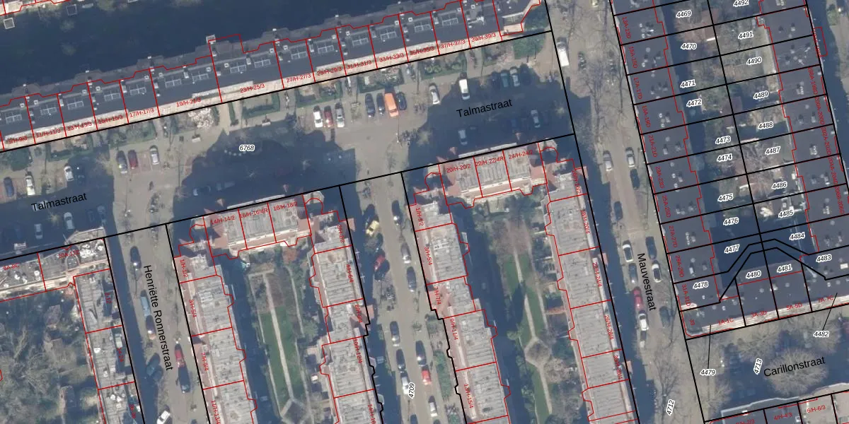 Het perceel waarop het adres ligt is ASD18-V-4710. De afkorting 'ASD18' staat voor kadastrale gemeente Amsterdam. De oppervlakte van het perceel is 5550 m². Dat is groter dan gemiddeld in Amsterdam, waar de gemiddelde perceeloppervlakte op 558,8 m² ligt. Het grootste perceel in de kadastrale gemeente is 12,5 ha. Het kleinste perceel heeft een oppervlakte van 0 m². Op het perceel zijn 162 adressen aanwezig. De laatste wijziging in het de Basisregistratie Kadaster (BRK) was op 09-08-2006.