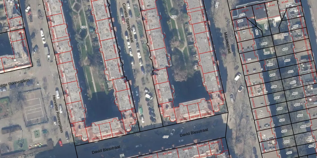 Het perceel waarop het adres ligt is ASD18-V-4710. De afkorting 'ASD18' staat voor kadastrale gemeente Amsterdam. De oppervlakte van het perceel is 5550 m². Dat is groter dan gemiddeld in Amsterdam, waar de gemiddelde perceeloppervlakte op 558,8 m² ligt. Het kleinste perceel in de kadastrale gemeente is 0 m² groot. De grootste perceeloppervlakte is 12,5 ha. Er zijn 162 adressen aanwezig op het perceel. In de Basisregistratie Kadaster (BRK) werden de grenzen van het perceel geregistreerd op 09-08-2006.
