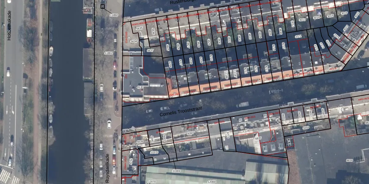 Het perceel waarop het adres ligt is ASD18-V-8207. De afkorting 'ASD18' staat voor kadastrale gemeente Amsterdam. Het perceel is 128 m² groot. Dat is kleiner dan de gemiddelde perceeloppervlakte in Amsterdam, dat op 558,8 m² ligt. Het grootste perceel in de kadastrale gemeente is 12,5 ha. Het kleinste perceel heeft een oppervlakte van 0 m². Op het perceel zijn 4 adressen aanwezig. In de Basisregistratie Kadaster (BRK) werden de grenzen van het perceel geregistreerd op 20-09-2006.