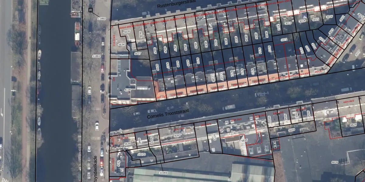 Het perceel waarop het adres ligt is ASD18-V-8208. De afkorting 'ASD18' staat voor kadastrale gemeente Amsterdam. Het perceel is 128 m² groot. Dat is kleiner dan de gemiddelde perceeloppervlakte in Amsterdam, dat op 558,8 m² ligt. Het grootste perceel in de kadastrale gemeente is 12,5 ha. Het kleinste perceel heeft een oppervlakte van 0 m². Op het perceel liggen in totaal 4 adressen. De huidige grenzen van het perceel zijn digitaal in de Basisregistratie Kadaster (BRK) geregistreerd op 20-09-2006.